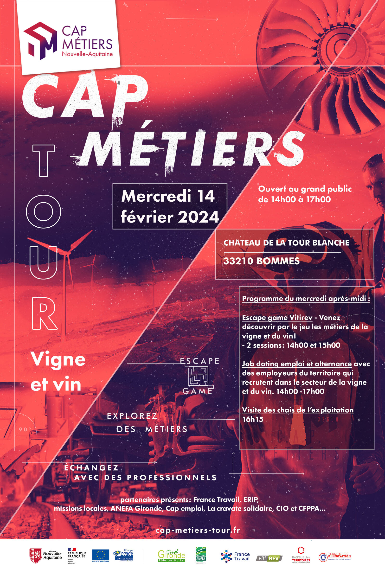 Dans le cadre de la semaine des découvertes des métiers de la viticulture organisée par Cap Métiers, plusieurs événements emploi vous sont proposés autour des métiers viticoles dans un cadre d'exception.